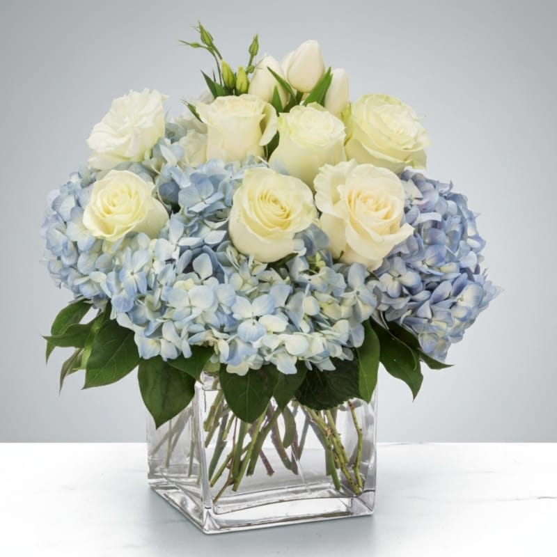 Soft ivory roses and pale blue hydrangea bring a breath of coastal calm to Island Walk. Designed for spaces that favor balance over excess, The Seabreeze carries the stillness of the water into every room. Graceful, polished, and quietly restorative.